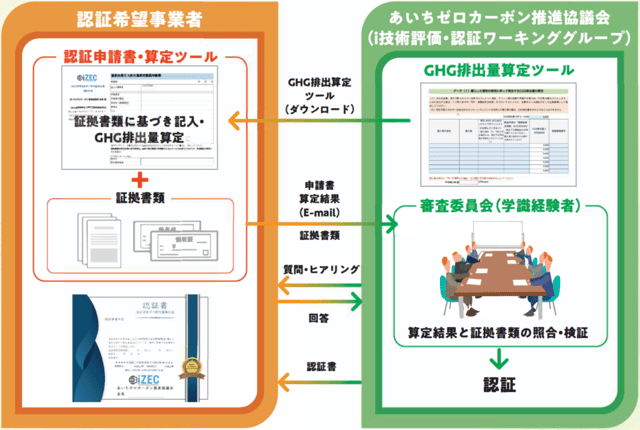 こうした重要な意味を持つ温室効果ガス排出量の算定については、何よりも正確性が大切です。このため、あいちゼロカーボン推進協議会(iZEC)では、算定に必要なデータの収集から算定のプロセス、算定結果までが適切に行われているかについて学識経験者が審査し認証するiZEC温室郊果ガス排出量算定認証事業を全国に先がけ取り組み、企業におけるゼロカーボン化の取組の加速化をサポートします。